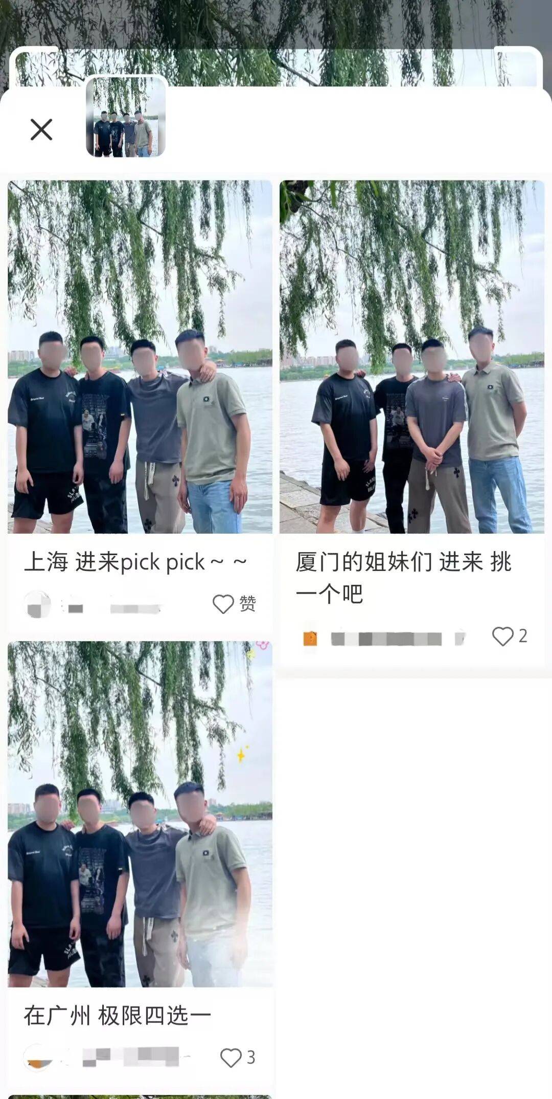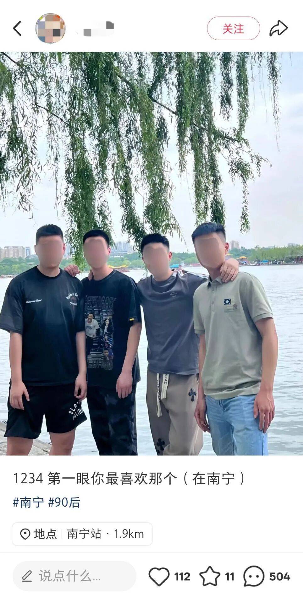 记者核实发现,小婷看到的吸引其注意的男士照片实为引流网图,此网图的拍摄地并非在南宁,4名男士的照片也在其他城市出现。