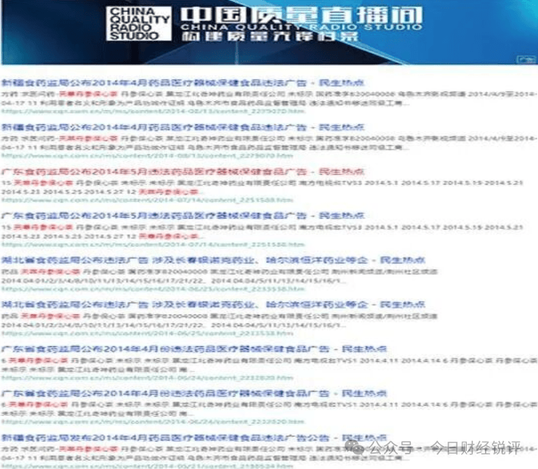 据相关媒体报道,早在2014年、2015年关于“天草丹参保心茶”的严重虚假广告就曾被全国多地食药监局预警公告。违法内容包括含有利用患者名义和形象为产品功效作证明,不科学地表示功效的断言、保证等,严重欺骗和误导消费者等等。