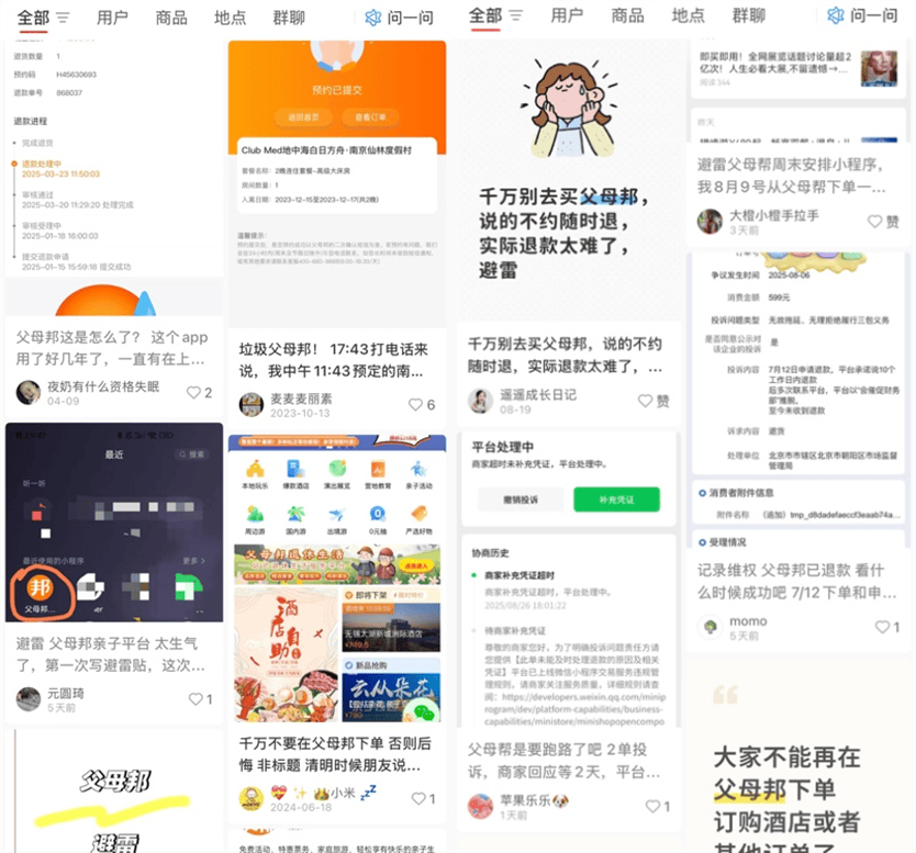 在社交媒体上和各大投诉平台上,今年暑期关于父母邦旅行退款难的避雷贴和投诉贴集中爆发。