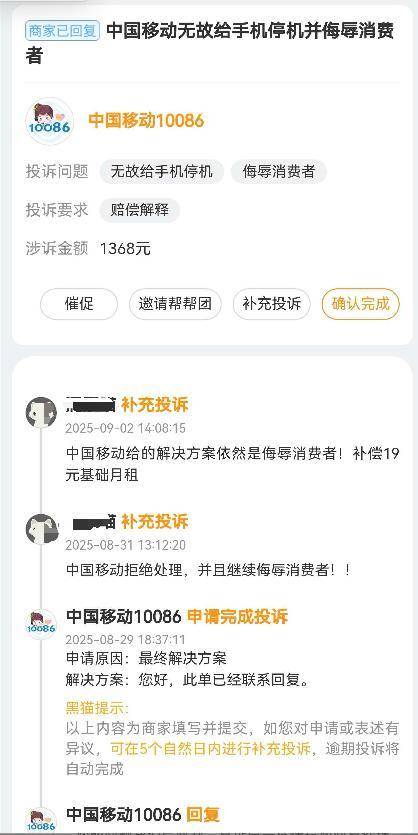 9月3日晚9时许,云南移动回复杨先生,投诉处理意见与此前一致,依旧为充19元话费。杨先生不接受,投诉要求赔偿至9年基础月租。