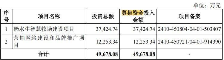 招股书显示,此次IPO,百菲乳业计划募集资金4.97亿元,其中3.74亿元用于奶水牛智慧牧场建设项目,1.23亿元用于营销网络建设和品牌推广项目。