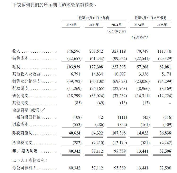 招股书显示,2022年~2024年,天星医疗实现收入分别约为1.47 亿元、2.39亿元、3.27亿元;净利润分别为4034.2万元、5711.2万元、9538.9万元,其营收与净利润快速增长。