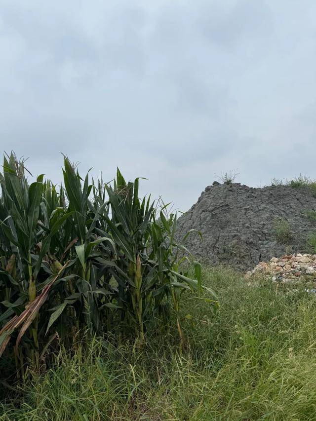 记者在堡子店村北的一片耕地中走了个来回,共见到5处矿渣堆:黑色的、灰色的矿渣聚成了直径接近10米、高两三米的“小山”,有的紧挨着生长着的玉米,有的堆上覆了十几厘米厚的土层,上面长着些杂草。