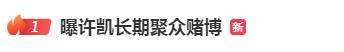 8日,有媒体曝许凯长期聚众赌博。该话题迅速登上热搜第一!