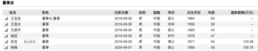 2024年年报显示,张宝年薪120.08万元,持股达1656万股。