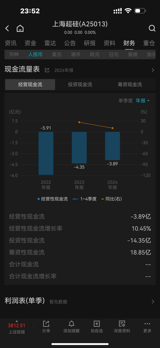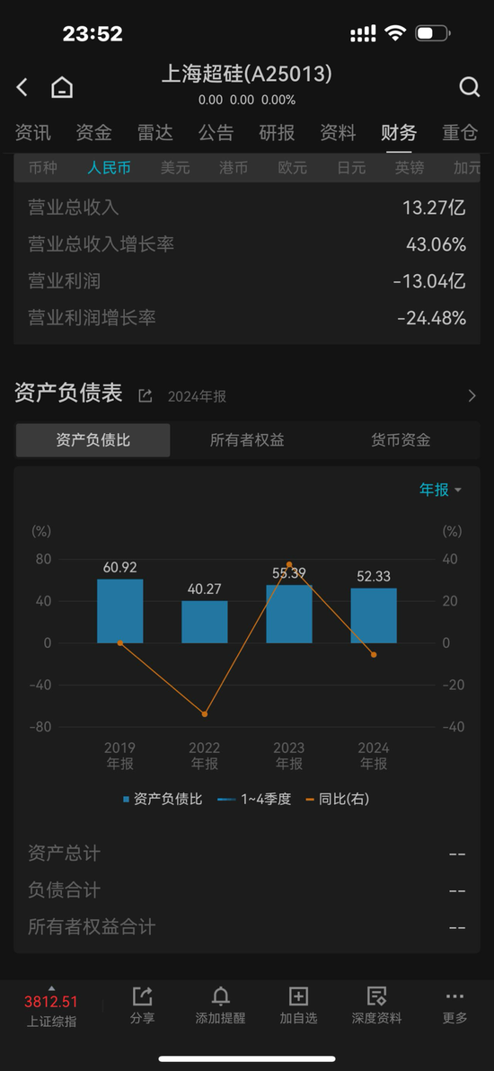 财务数据显示,上海超硅的资产负债率从2022年的40.27%攀升至2024年的52.33%,流动比率则从3.37骤降至0.98。流动比率跌破1意味着公司的短期偿债能力亮起红灯。