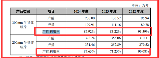 更令人质疑的是,公司拥有设计产能70万片/月的300mm半导体硅片生产线,但截至2024年末,实际产能仅为28万片/月,仅为设计产能的四成。