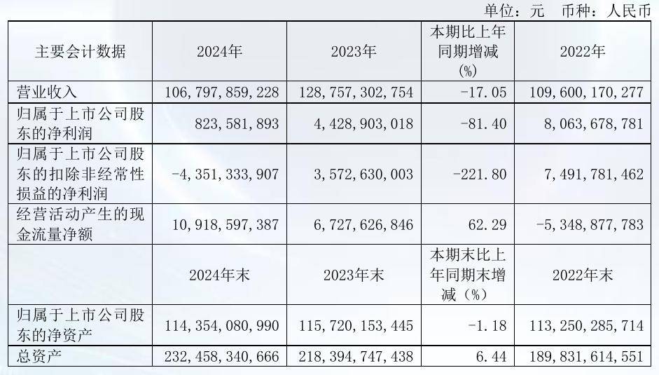 拉长时间线后不难发现,广汽集团的业绩颓势早有征兆。该公司的营业总收入由2023年的1297.06亿元降至2024年的1077.84亿元,降幅约为16.90%,收入规模甚至不及2022年的1102.72亿元。