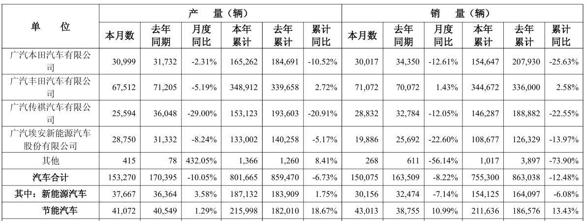广汽集团在财报中坦言,该公司在报告期内推出的几款重点新能源车型,不过销量仍处于爬坡期,上半年新能源车辆共计售出15.41万辆,同比下滑6.08%,未达计划目标;同时受国内汽车行业竞争激烈等影响,收益下滑。