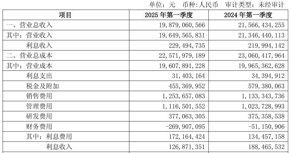进入2025年后,失去“粉饰”的广汽集团营收与利润双双“跳水”的窘境无处遁形,不仅一季度合并口径下的总收入同比下滑7.82%至198.80亿元,归母净利润更是骤降159.95%,录得-7.32亿元的亏损。