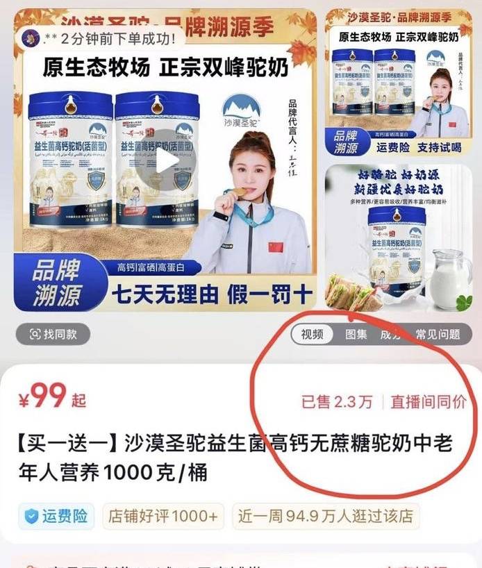 截至发稿时,涉事直播间“沙漠圣驼总店”累计销量已超2.3万件,消费者权益保护问题引发广泛关注。
