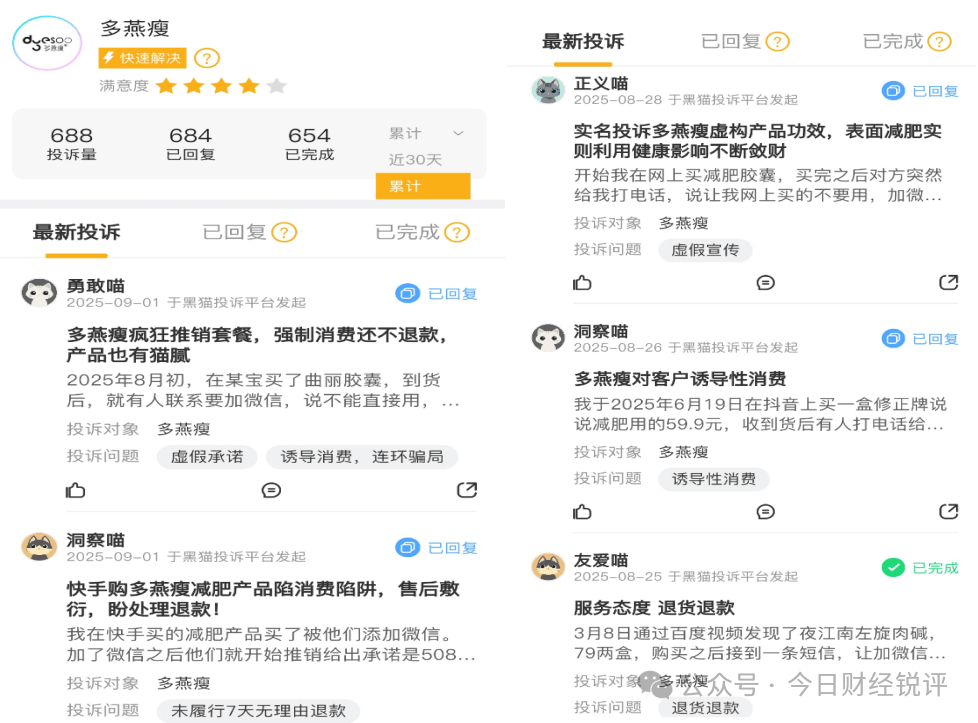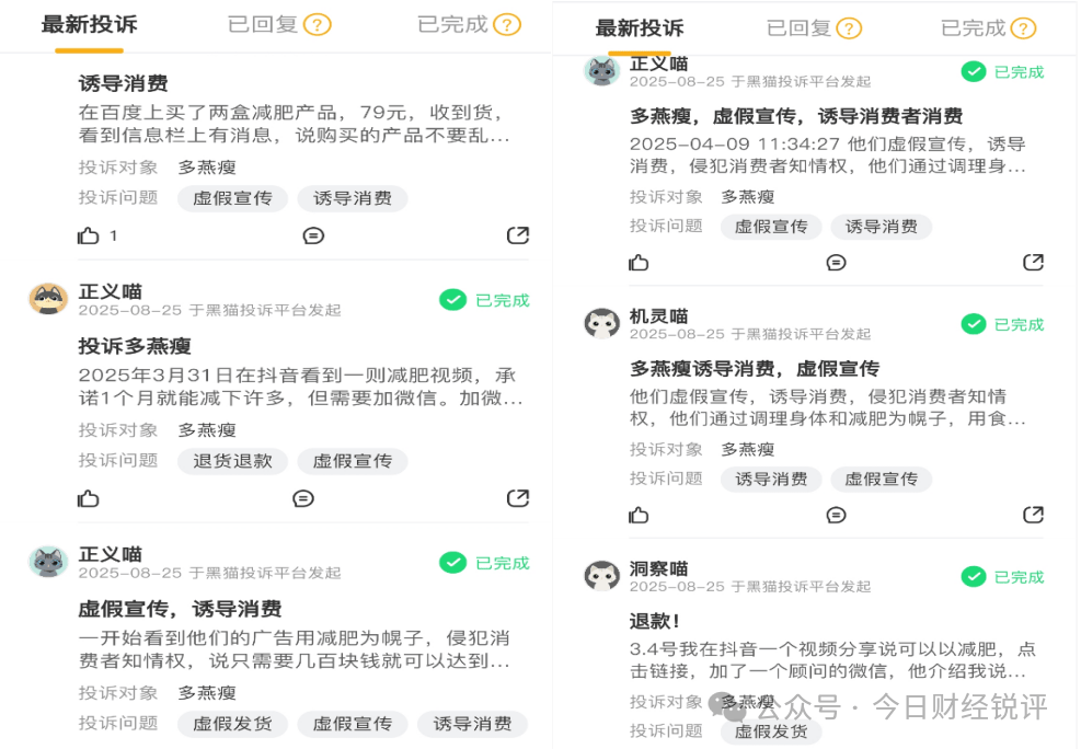 回顾多燕瘦过往舆情,消费者投诉主要集中在虚假宣传、诱导消费和退款难等方面。