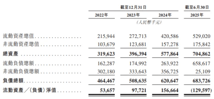 同时,公司资产负债率呈现逐年下降趋势,但整体仍处于高位。报告期各期,资产负债率分别为145.32%、128.32%、107.40%、97.00%。此外各期,流动比率分别为1.3倍、1.6倍、1.6倍、0.8倍;速动比率分别为1.0倍、1.2倍、1.2倍、0.7倍,短期偿债能力指标有所走弱。