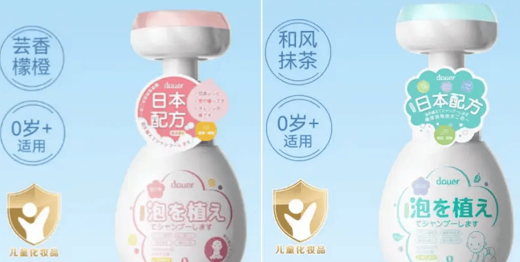 同样,DOUER逗儿宝宝花朵泡泡洗发沐浴露(青萃觅瓜)和DOUER逗儿宝宝花朵泡泡洗发沐浴露(和风茶萃)在电商平台宣传“0岁+适用”,但备案的使用人群为“02儿童”,按照化妆品备案要求,“02”指的是3-12周岁的儿童,并非“0岁+”,这显然属于虚假宣传。