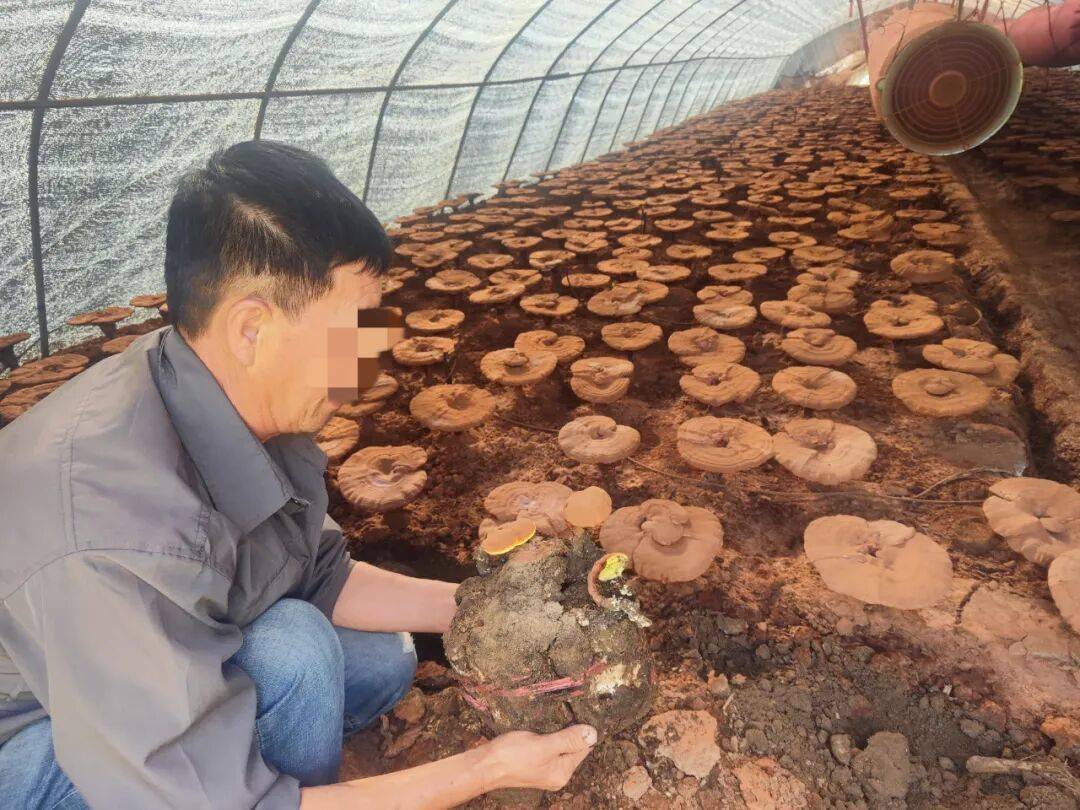 据邱女士介绍,他们一家住在离此地60多公里的红石砬子镇高兴村,2024年春天,他们一家来到这里,投资近100万元,搭建了52座大棚种植灵芝。2024年4月份的一天,桦甸网红“东北兄弟”(小明子、大国子、宝玉)来到他们家,看到种植棚内正在插木段,便主动表示要收购全部的灵芝孢子粉。从这一天开始,3人经常来到种植棚内摆拍视频、编段子,有时会进行场景设计,例如在种植棚内劳作,因棚内温度高突然晕倒。