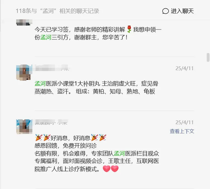 从4月初到现在,包括张先生在内的全国多地老人,聚集在伪养生社群倾听《走进孟河》栏目健康知识课程,并打卡与客服保持联系,试图找到解决自身疾病的方法和“灵丹妙药”。