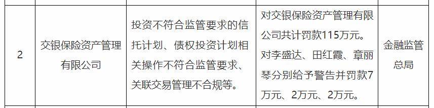 2025年9月5日,交银保险资管因多项违规行径,被国家金融监督管理总局处以115万元罚款,加之对3名责任人合计11万元的行政处罚,这一举措再度将这家银行系险企推至舆论的风口浪尖。