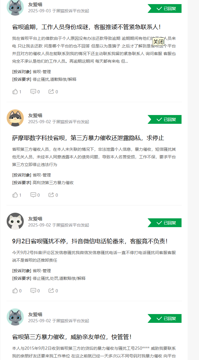 值得注意的是,暴力催收是投诉重灾区。在黑猫投诉等平台上,有用户反映省呗的相关催收人员采用极为不当手段,如发送侮辱性短信,使用威胁性语言,骚扰同事、家人等无关第三方,公开债务信息并威胁 “曝光个人隐私” 等,给借款人造成巨大心理压力。
