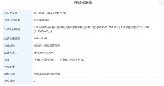 该处罚事由为,德特来都(南京)商贸有限公司作为韩国润美迪欧品牌在中国市场的运营主体,通过自主研发的“德特来都”APP销售该品牌化妆品。