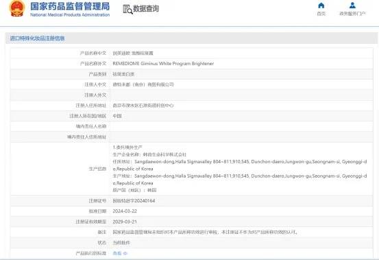 公开资料显示:润美迪欧这一品牌隶属于韩国卡丽斯集团,前身为韩松生命科学研究院,2011年转型进入护肤品领域,旗下拥有焕肤奢华精华、璀璨焕肤套装、维生素C精华三件套等18种品类。2021年,德特来都(南京)商贸有限公司将其正式引入中国,并在国内开展大规模的销售。