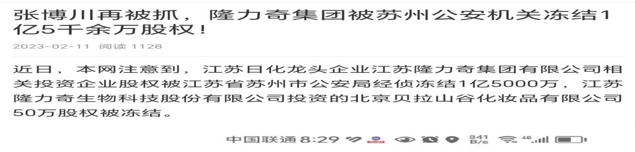 隆力奇公司是一家以生产销售日化用品、保健食品为主的国内知名民营企业,公司法人徐之伟因非法集资案被苏州公安机关取保候审,至今尚未结案。