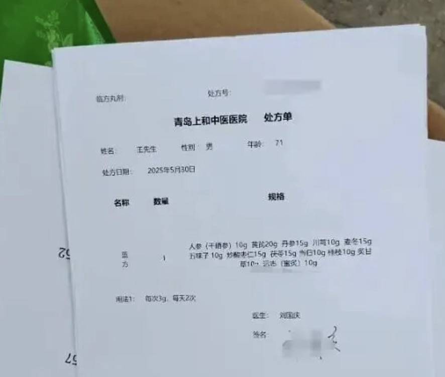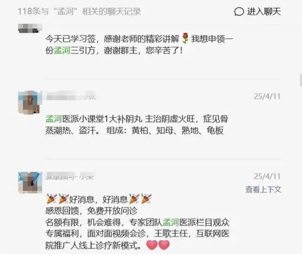 在《走进孟河》社群中,客服并不主动推销药品,而是通过每天发送课程链接和“课程回顾与总结”来维持联系。当老人表达购药意愿时,客服会安排视频通话确认身份,随后由自称青岛上和中医院的医生进行视频问诊,并开具处方。药品通过邮寄方式送达,老人需向快递员支付高额费用,收据上印有上和中医院有限公司公章。