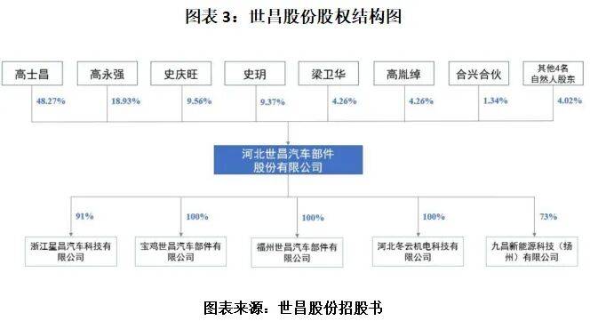 招股书显示,作为世昌股份的控股股东,高士昌持股比例为48.27%,其子高永强直接持有世昌股份18.93%的股权,高氏父子二人为世昌股份的共同实控人。