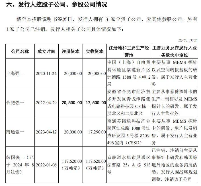 值得关注的是,涉案主体韩国强一成立于2022年,主要从事探针卡研发及境外市场拓展工作,却在事发后不足一年即2024年8月完成注销。强一股份对外解释称,这一决定是出于集团战略规划调整的需要。