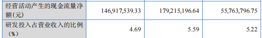 尽管公司报告期内净利润持续增长,但经营活动产生的现金流量净额呈现波动:分别为5576.38万元、1.79亿元和1.47亿元。
