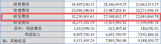 作为科技企业,研发投入是衡量其创新能力的重要指标。报告期内,晨泰科技研发投入分别为2288.39万元、2739.88万元和3223.09万元。