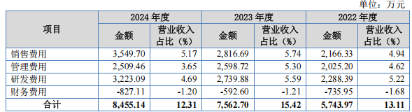 然而,2024年研发费用率只有4.69%,低于同行可比公司7.09%的平均水平。更令人惊讶的是,公司的销售费用率(5.17%)甚至高于研发费用率。