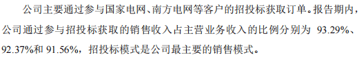 主要通过招投标获取订单,报告期内通过招投标获取的销售收入占比分别为93.29%、92.37%和91.56%。这种业务模式使公司在面对强势客户时议价能力有限。