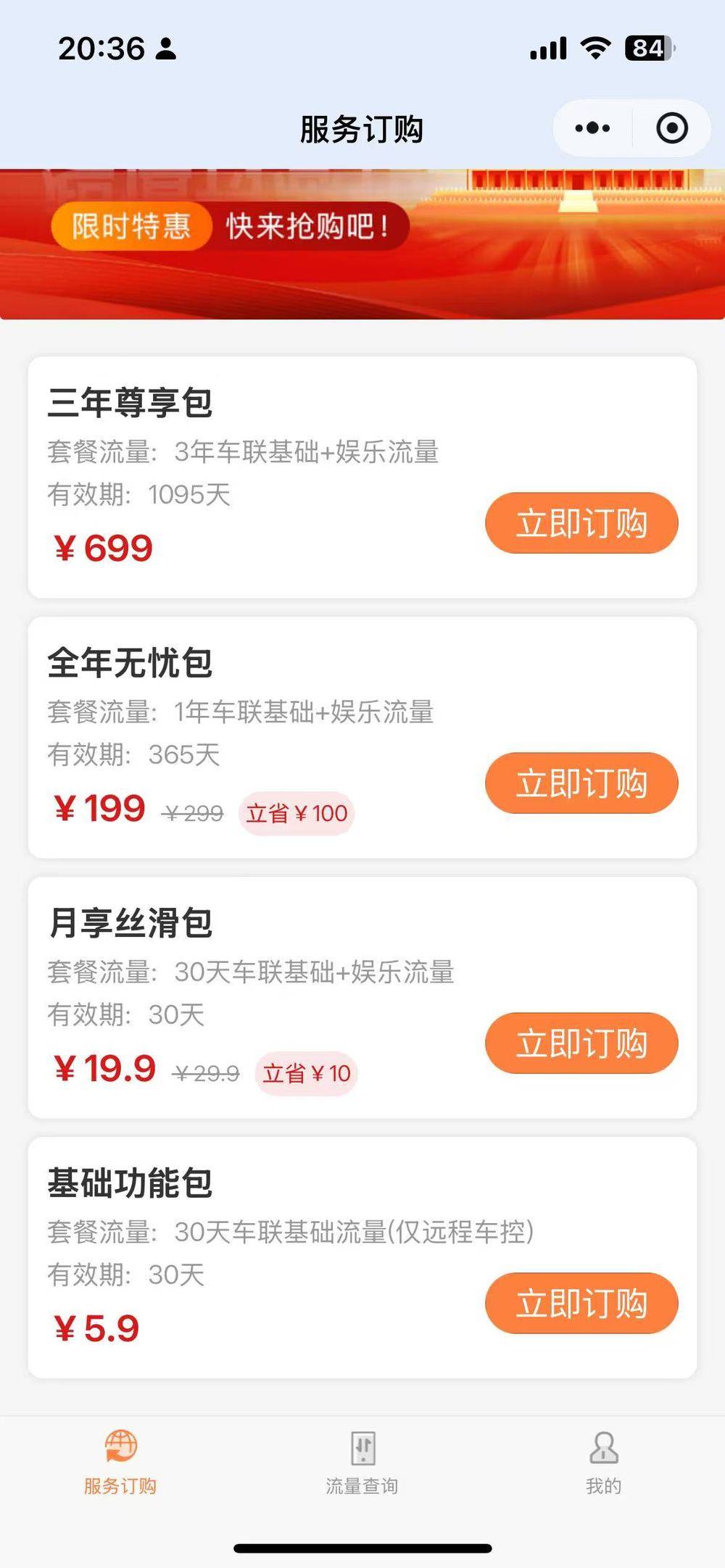 截至目前,已有多名哪吒汽车车主表示,自己的车已经断网。联想懂的提供的流量包界面显示,目前提供四种服务包,价格分别为5.9元/月、29.9元/月,299元/年,699元/三年,其中,最便宜的一档基础功能包仅支持远程车控。