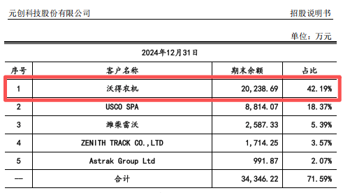 这种依赖带来的是议价权的丧失。2024年,沃得农机贡献24.26%营收,却占据应收账款总额的42.19%。