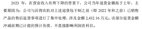 更令人忧心的是退货问题。2020年至2023年,沃得农机退货金额从1456万元增至2432.16万元,呈现持续上升趋势。退货不仅增加成本,更对企业盈利能力和品牌形象构成双重打击。