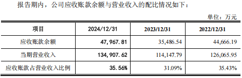 2024年净利润同比下降12.94%,但应收账款却同比激增35.18%至4.80亿元,占营收比例高达35.56%。