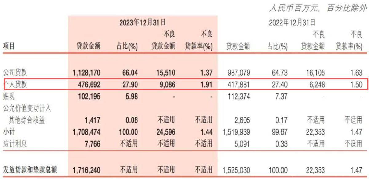 与此同时,浙商银行的个人贷款业务的不良规模亦在快速增长。截至2023年末,个人贷款的不良贷款金额约为90.86亿元,比2022年末增加28.38亿元;不良贷款率1.91%,上升0.41个百分点。