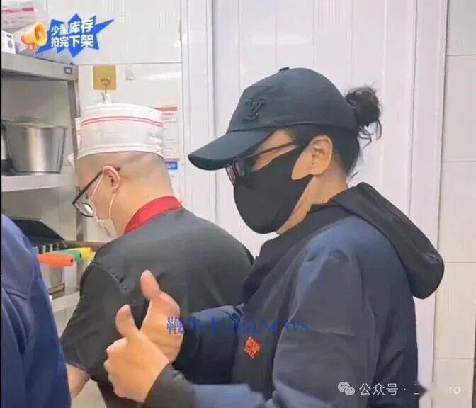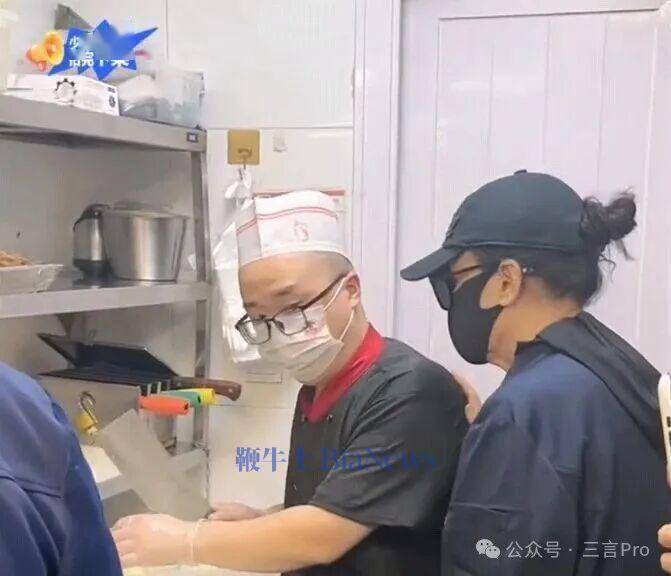 之后,张兰拍了拍其中一名厨师后背,示意自己要切菜。
