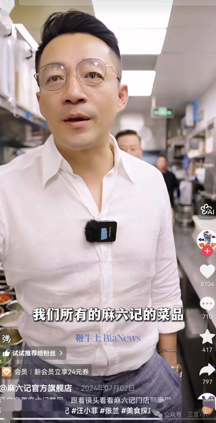 另外,三言发现麻六记官方旗舰店在2024年7月发过一条视频中,张兰儿子汪小菲也存在疑似违规进后厨情况。