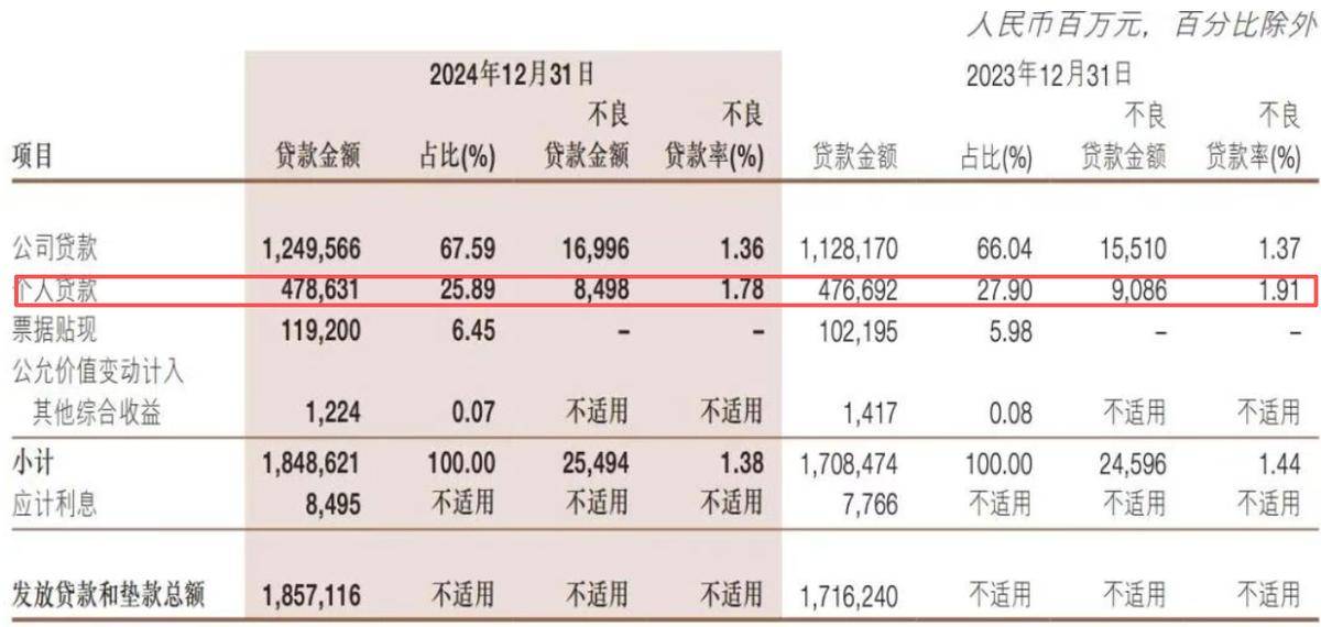 根据浙商银行2025年半年度报告,浙商银行个人贷款的不良贷款规模再次增长。截至2025年上半年,该行个人贷款的不良贷款金额约为91.91亿元,比2024年末增加6.93亿元。同时,不良贷款率1.97%,比2024年末上升0.19个百分点。