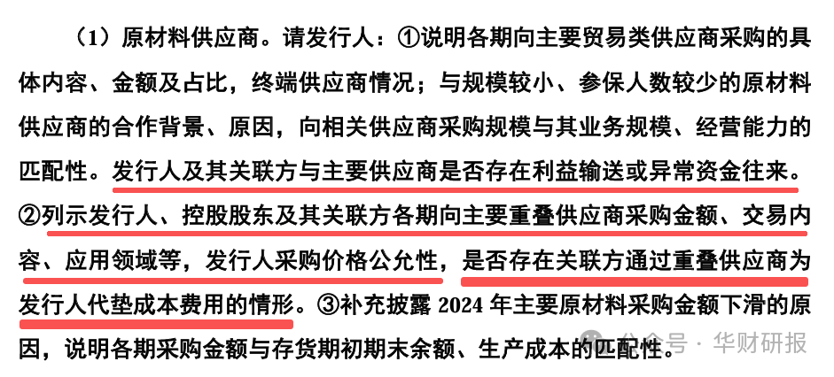 不仅是顶立科技供应商准入制度和评价流程惹人怀疑,交易所也进一步质疑“发行人及其关联方与主要供应商是否存在利益输送或异常资金往来”(下图)。