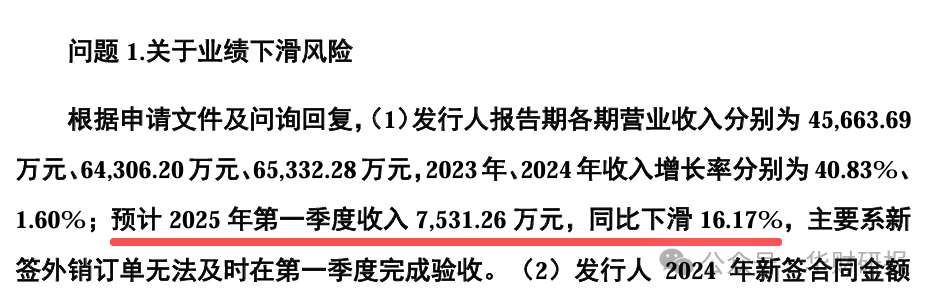 《华财》由此还发现了顶立科技信息披露存在前后不一致的问题,以上签署于2025年4月11日的首轮问询回复显示,公司2024年新签合同总金额为57154.77万元(上图),但是签署于2025年5月27日的二轮问询回复显示,该金额为60433.87万元(下图),相差3279.1万元。