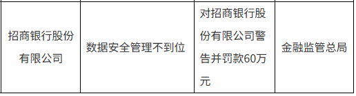 招商银行也因数据安全管理不到位被监管警告并罚款60万元。