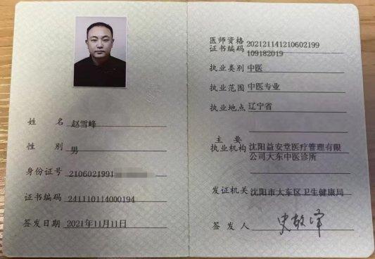 根据宜章县市场监管局调取的执业医师证显示,赵雪峰1991年出生,医师资格证签发日期2021年11月,执业刚满三周年。