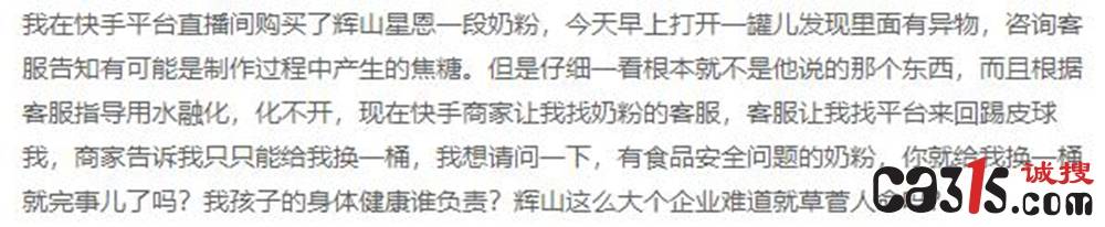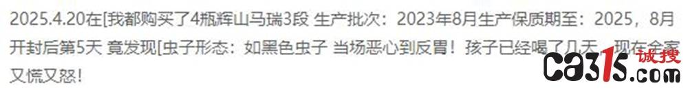 更令人担忧的是,部分消费者反映在辉山产品中发现虫子、头发等异物。有消费者投诉称,在给孩子冲泡辉山奶粉时,发现奶粉中有黑色虫子,"孩子已经喝了几天,现在全家又慌又怒。"