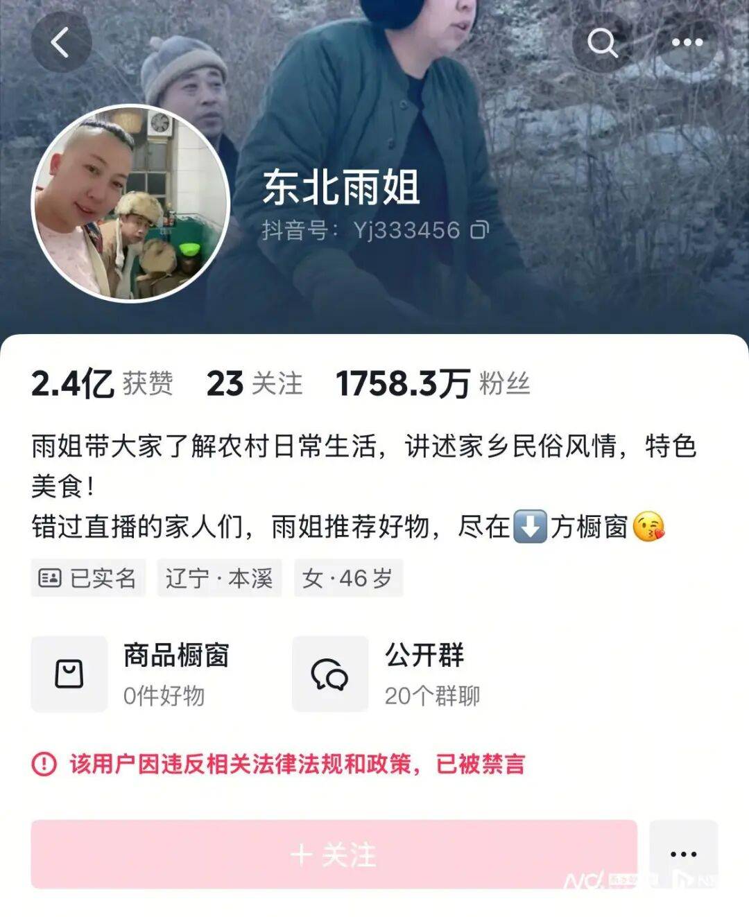 东北雨姐涉虚假宣传被禁言