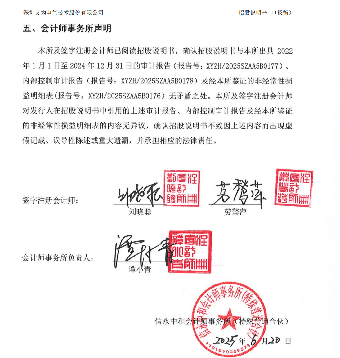 目前艾为电气 IPO 的会计事务所是信中和,查了一下IPO说明书,目前版本的说明书上没有 2022 年数据造假的记录。预计下一个版本应该要有个说明