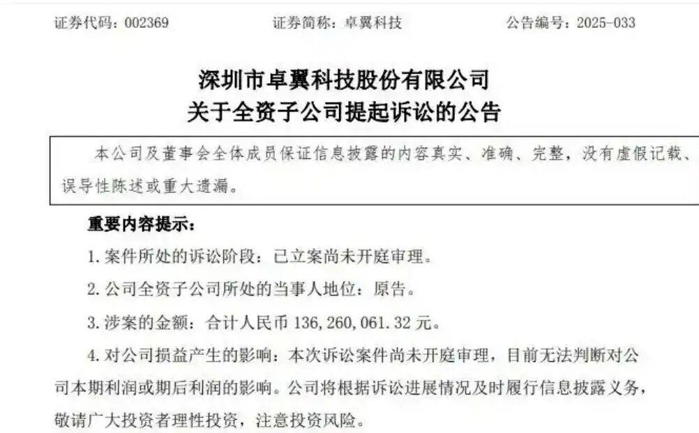 自燃风波后的罗马仕,经营危机正向A股供应链蔓延。近日,深圳市卓翼科技股份有限公司发布公告,其全资子公司深圳市卓翼智造有限公司就与江门罗马仕科技有限公司及其他五家公司的承揽合同纠纷,向江门市蓬江区人民法院提起诉讼,案件已立案未开庭,涉案金额达1.36 亿元,在3C行业供应链引发关注。