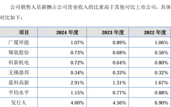 公司表示,受销售人员数量、平均薪酬水平影响,公司销售人员薪酬占营收比重较高,因此销售费用率高于同行。