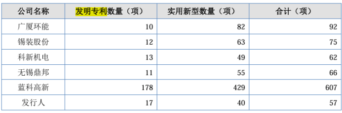 报告期内,公司研发费用率分别为3.90%、4.14%、4.63%,呈现上升态势,不过,发明专利数量和实用新型数量却低于同行,截至今年3月末,公司的专利数量合计57项,而同行业可比公司均在60项以上。